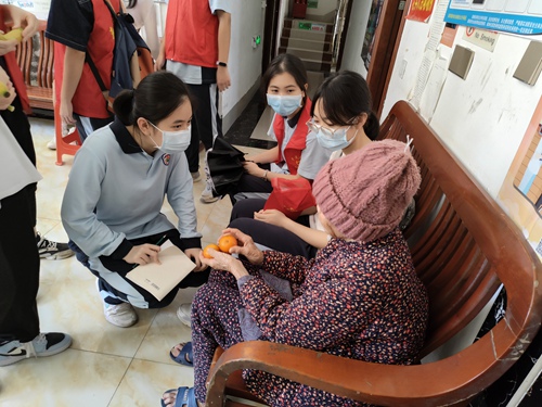 小善蕴真情,众爱彰和谐。志愿者们带来了时令水果、保健食品,让老人们保证充足的营养和水分摄入。长者年迈,同学们亲力亲为,为长辈拍拍背、揉揉肩、捶捶腿,让老人们舒缓疾痛。与此同时,志愿者还将自身的才艺与学识展示出来。无论是和谐动听的歌声,又或是扣人心弦的故事,都让敬老院增添欢乐的气氛。