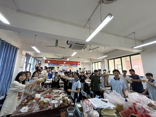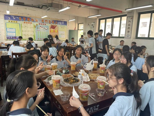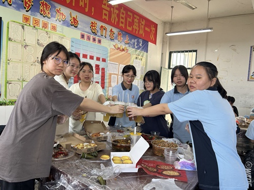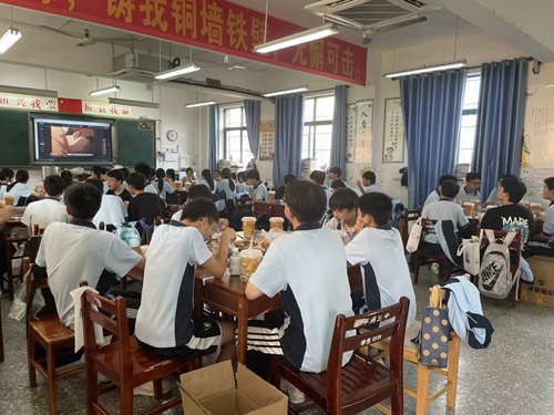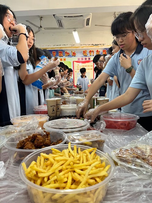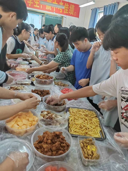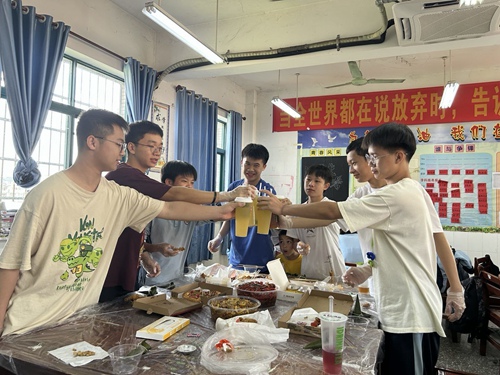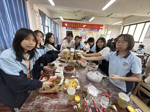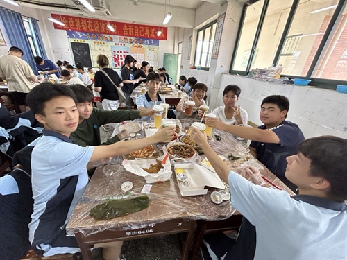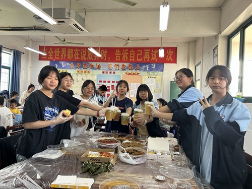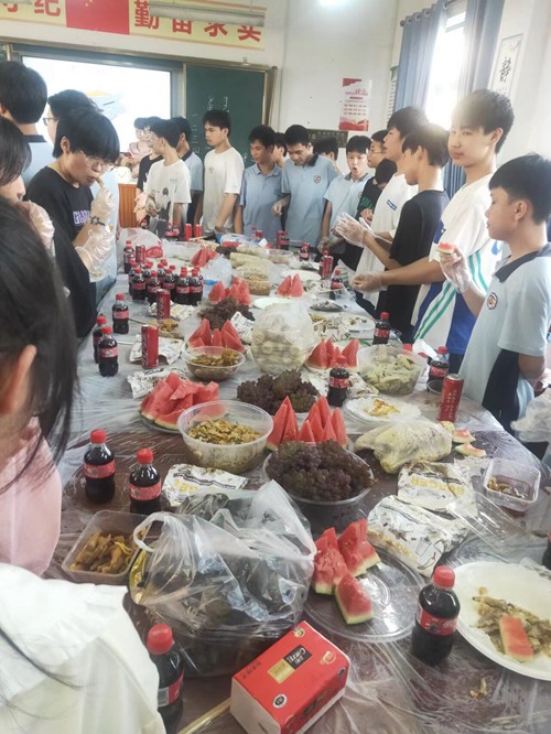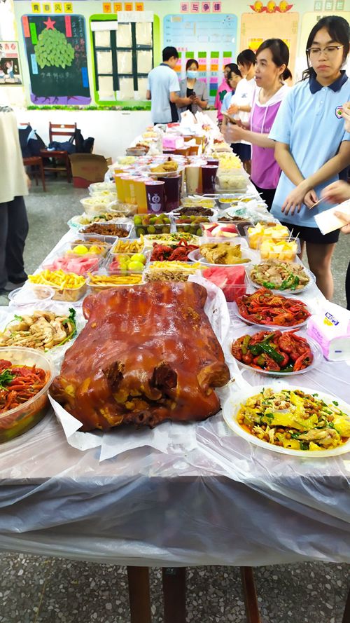 游戏之后,同学们尽享舌尖上的盛宴。各班在家长的大力协助之下,各色各样的美食被搬到了教室,同学们与老师们一起畅享美食,畅谈未来。