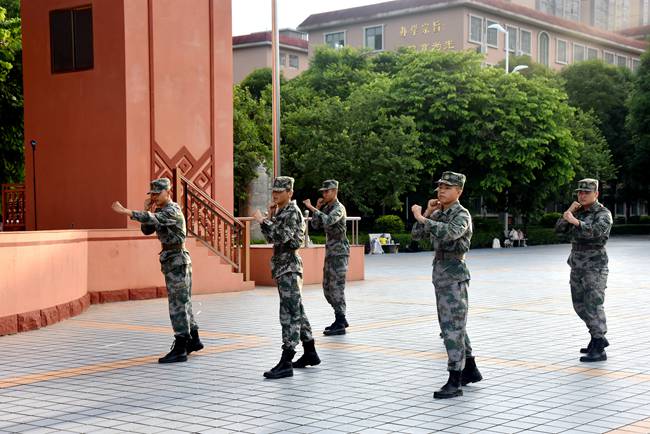 教官们进行了会操表演,他们飒爽的英姿、整齐划一的步伐震撼了在场的老师和参训的同学们。