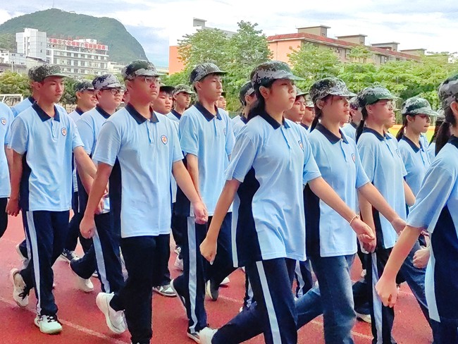 鲜衣怒马少年时,厉兵秣马点兵日。2023年9月8日下午,18luck娱乐高2023级军训汇演暨闭幕式在学校田径场隆重举行。本次大会由董事长助理兼学生处主任谢炬燊主持,黄尚泽董事长、高文广校长、杨琦副校长、黄伟副校长、全体教官以及学校各中层领导出席本次大会。高2023级全体教师、学生和部分家长参加此次闭幕式。