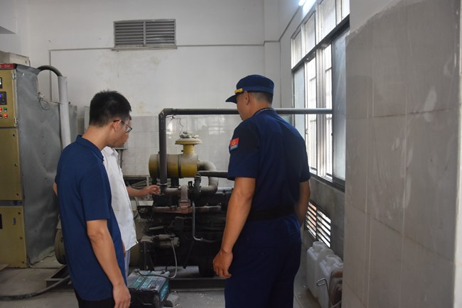 安全始于防范,责任重于泰山。消防大队及我校董事长助理兼后勤处主任林振冬、后勤处副主任梁元善、后勤处副主任陈炎峰通过实地查看、现场测试、督促指导等方式,对微型消防站、教学楼、化学实验室、宿舍、食堂以及电站等场所进行逐一检查。期间,重点对疏散通道、安全出口是否保持畅通,应急照明、室内外消火栓等消防设施器材是否完好可用,重点部位消防安全措施是否到位等情况进行了全面检查。并对检查过程中发现的问题,按照要求立即落实整改任务,严格落实主体责任,及时消除安全隐患。
