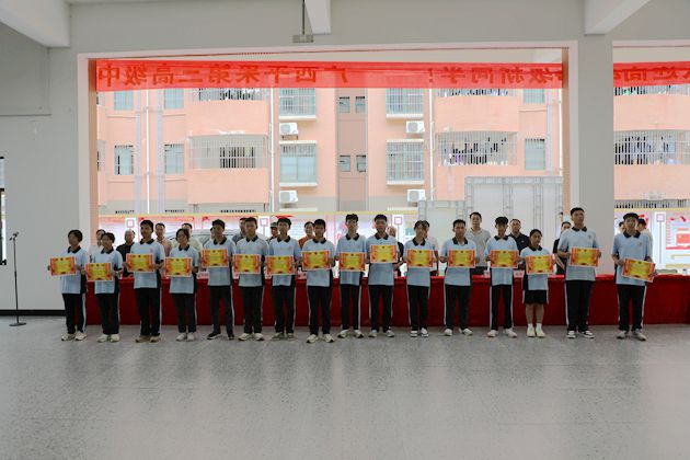 汇演结束后,高一年级组长庞雁老师宣布军歌合唱比赛结果,高一年级副组长黄名庭老师宣读内务评比获奖名单,谢炬燊副校长宣布会操评比结果,学校领导为获奖班级颁奖。