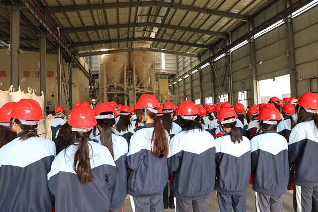 在基地相关负责人的带领下,同学们参观了万利车间、爬架。参观过程中,相关负责人向同学们详细介绍了公司的生产设备和产品制造工艺,同学们也是思维活跃,认真倾听、仔细观察。