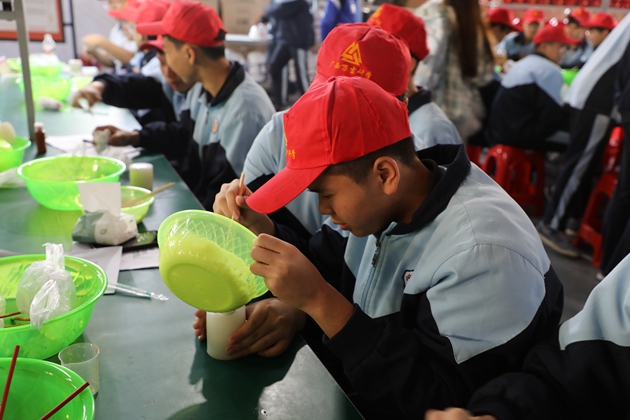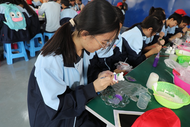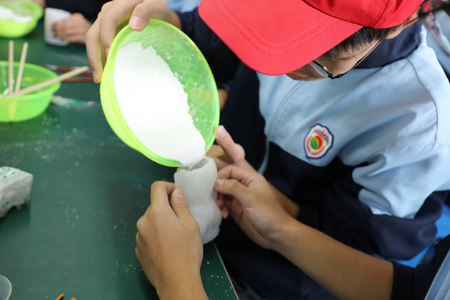 走进车间,探寻的是碳酸钙的精细加工技术与装备;走入课堂,启迪的是工业匠人精神。梁丽丽老师带领同学们展开了一节精彩有趣的手工制作课——制作石膏娃娃。同学们在石膏的秘密中生成一份精致的手工,蕴藏着别样的化学变化。一混一调是知识与实践的结合,一笔一画,磨练着同学们的耐性。那些石膏娃娃凝聚了同学们可贵的耐心,是大脑与双手的和谐共鸣。他们以灵巧之手,开拓创造的疆域,延伸想象的空间。