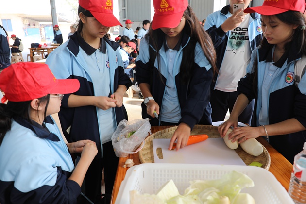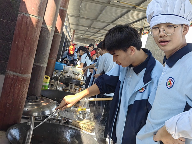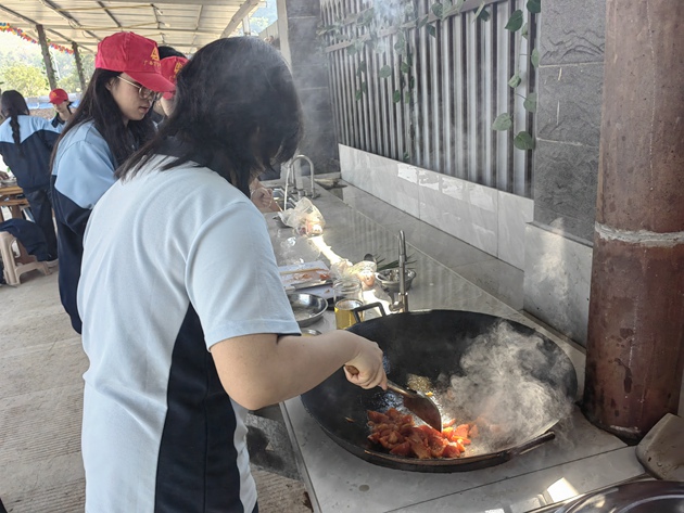 烹饪,是一场与烟火气息的浪漫约会锅中翻滚的食材,腾起的袅袅炊烟,仿佛能听到青春旋律在耳边轻轻响起。大家齐心协力,分工明确,清洗、配菜、掌勺、烧火.....每个人都发挥着自己的专长,共同为呈上这美味的菜肴而努力。