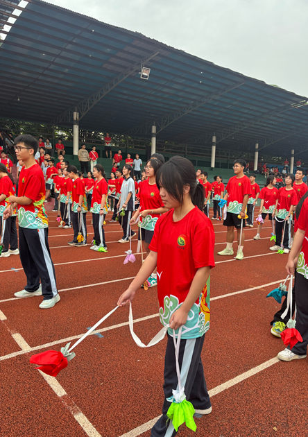 最热闹的当属“抛绣球”,背篓选手灵活走位,接球手们化身“神投手”,绣球划出优美弧线,精准入篓的一瞬,欢呼声直冲云霄。 同学们配合默契,以不间断的“抛物线”摘下一个个“硕果”。