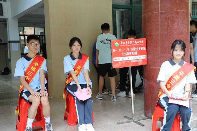 为了更好地迎接新生与家长们的到来,我校高度重视、精心策划并筹备本次报到活动,确保迎新工作的顺畅与高效。学校提前通过公众号发布新生报到指南,明晰报到的流程和资料;校内用于拍照的背景墙静静伫立,等待新主人留下印记;报到现场指引图也早已张贴,为新生及家长提供了直观的导引。每一个细节都藏着全体三中人迎接新成员的满满诚意。