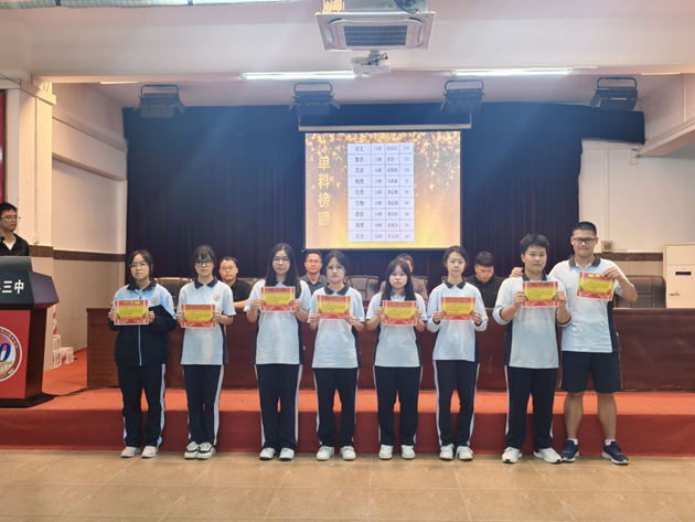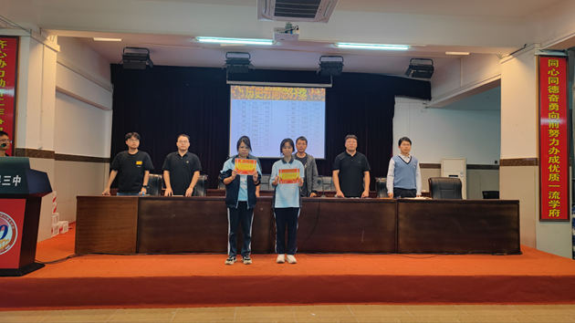 大会伊始,蒙振宇老师宣读了月考表彰名单。一批勤勉务实、锐意进取的学子荣膺嘉奖。这些学子以焚膏继晷之志,获竿头日上之功,其卓越成就不仅印证"天道酬勤"之理,更为同侪树立了见贤思齐之典范。获奖学子在如潮掌声中依次登台,接受这份饱含汗水与智慧的荣誉。