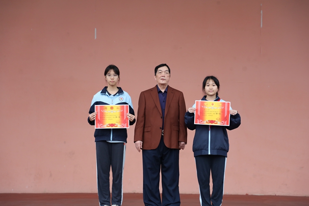 黄海慧副书记首先回顾了11月3日“二十年同心,歌声颂未来”合唱比赛的盛景:“初一学子的青涩赤诚、高一学子的张力担当,让这场音乐盛会成为平果三中二十载育人路上的生动注脚。”她特别提及各班级演绎的《天耀中华》《精忠报国》等曲目,点赞同学们用歌声诠释的家国情怀与青春理想,“现场公布了本次比赛的获奖名单(附后),并邀请黄尚泽董事长、高文广校长、黄春彬副校长、杨琦副校长、黄伟顾问、阮国辉副校长、谢炬燊副校长等为获奖班级颁奖。