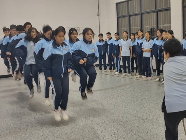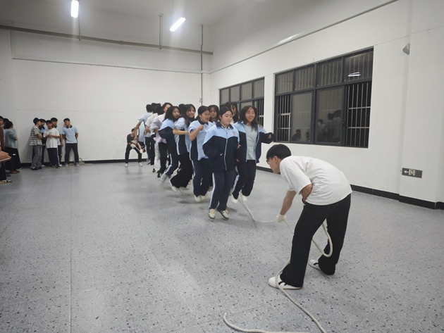 绳起如虹开胜景,人跃如燕踏长风。随着裁判员一声令下,长绳应哨声起舞,如银蛇腾空,划破凛冽寒风。摇绳者稳若磐石,执绳柄如握长虹,起落间把控全局;跳绳者轻似飞燕,迎着绳浪翩跹而过,脚步与绳韵相和。每一次起跳都是青春的音符,每一声计数都是奋进的节拍。“一二、一二”的整齐口号响彻操场,凝聚起千重声浪的磅礴气势,让凛冽寒风中的校园洋溢着滚烫的青春气息,感染着在场每一位师生。