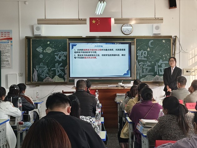 集中会议结束后,家长们移步各班教室,开启班级交流环节。班主任们精心准备了详实的PPT学生成长档案及孩子给家长的一封信,从班风建设、学情分析、个体表现等方面进行全面梳理。他们结合具体案例,分享了学生在课堂学习、课外活动中的亮点与不足,同时针对家长普遍关心的习惯培养、亲子沟通等问题给出实用建议。家长们认真聆听、仔细记录,不时与班主任互动交流,现场氛围热烈而融洽。通过这场“零距离”对话,家长们对孩子的在校情况有了更清晰的认知,也进一步明确了家校协作的重点。