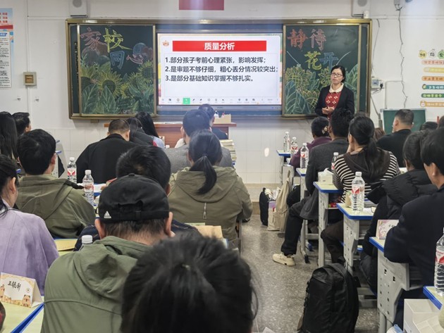 黄春彬副校长以家校共育,让孩子茁壮成长”为核心,向家长们全面介绍学校发展与年级建设情况。他详细解读了年级雄厚的师资配备,强调“快乐成长”的管理理念,通过丰富的体育活动与扎实的德育工作,助力学生全面发展;同时,围绕段考整体成绩进行客观分析,既肯定了学生们的进步,也明确了后续改进方向最后,着重强调,年级将始终坚守“不放弃每一个学生”的育人原则,用爱心、耐心与责任心呵护每一颗童心,这番真挚恳切的话语赢得了家长们的阵阵掌声,也让科学育人的理念深深扎根在每一位家长心中。